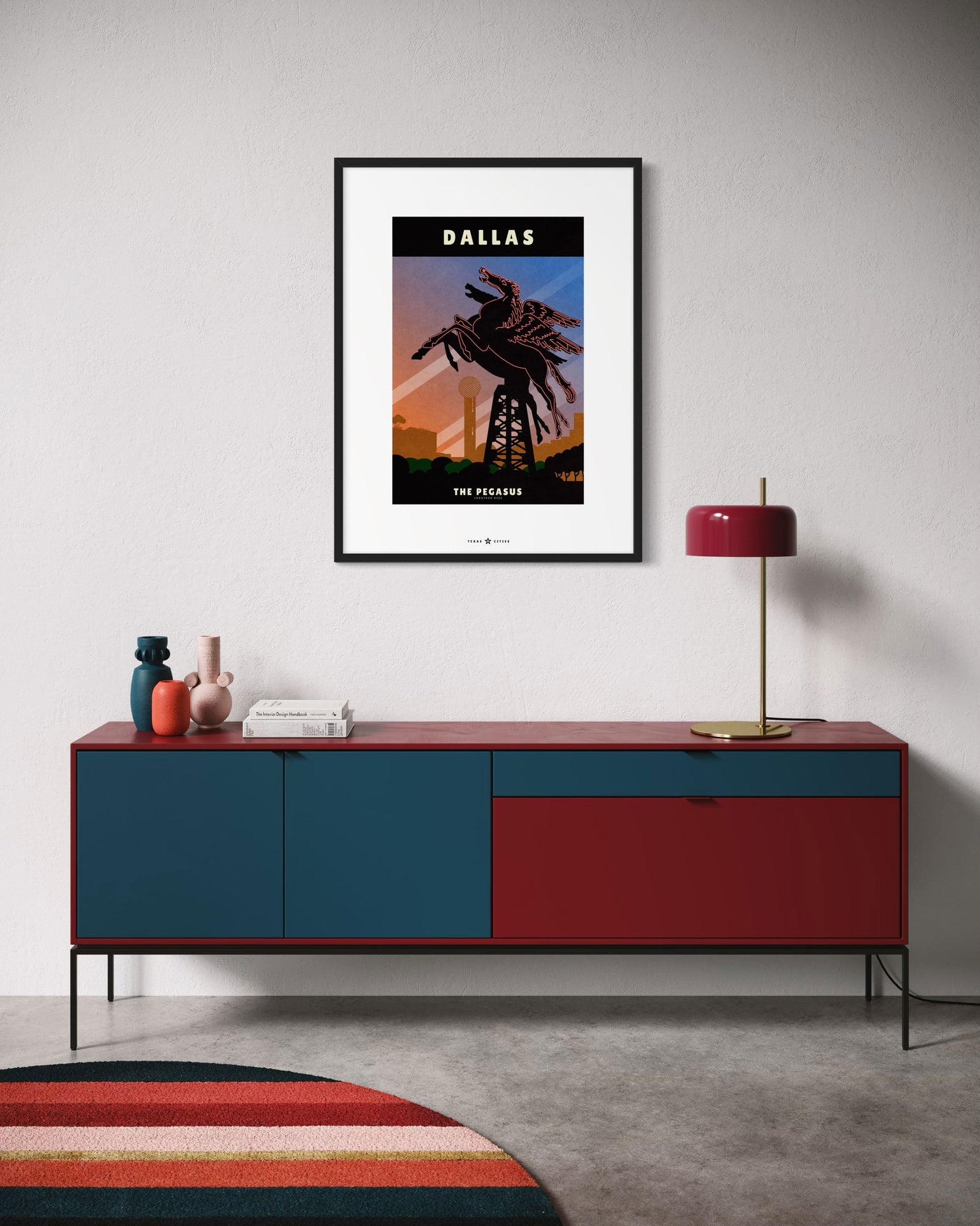 ring a piece of Dallas history to your wall with this retro-inspired poster of the iconic Pegasus neon sign, long...