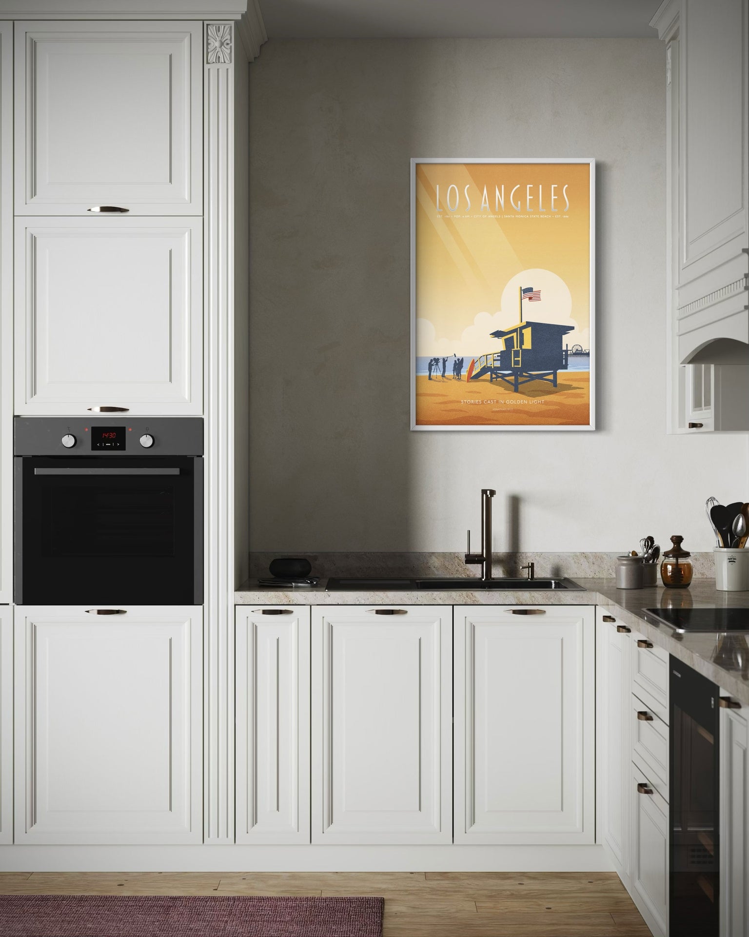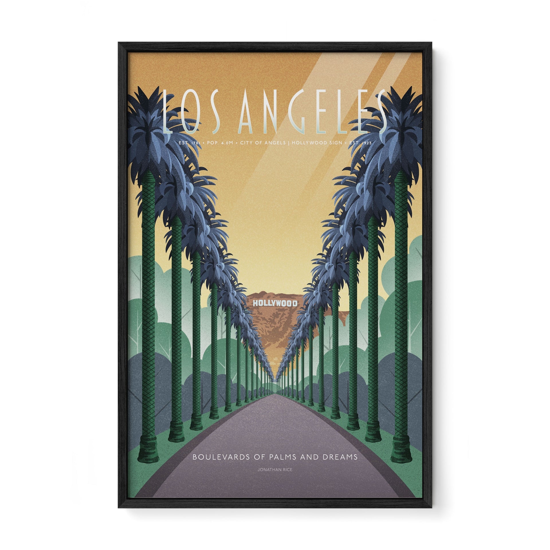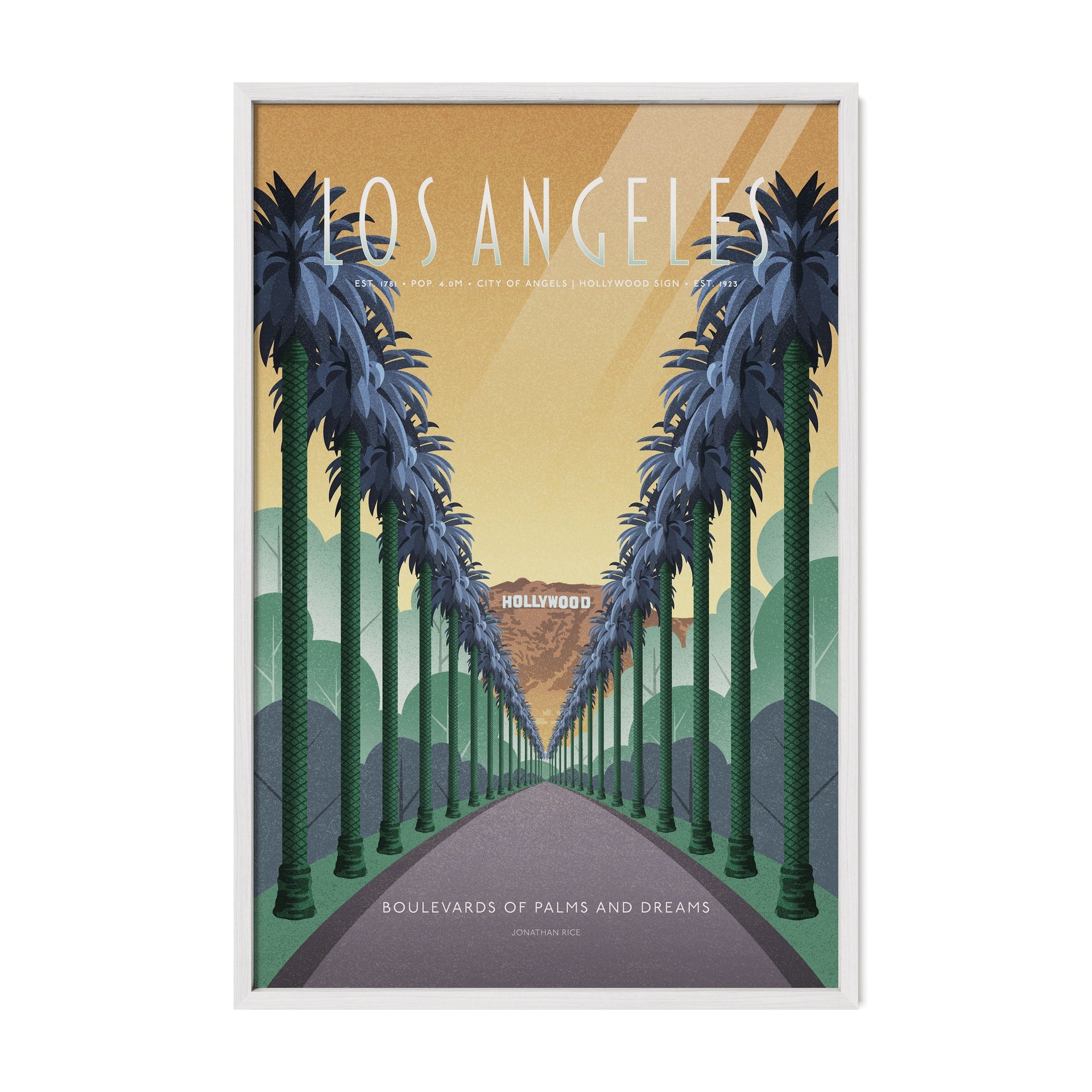 This illustrated poster celebrates the iconic boulevards of Los Angeles—a city shaped by motion, ambition, and imagination. From palm-lined avenues...