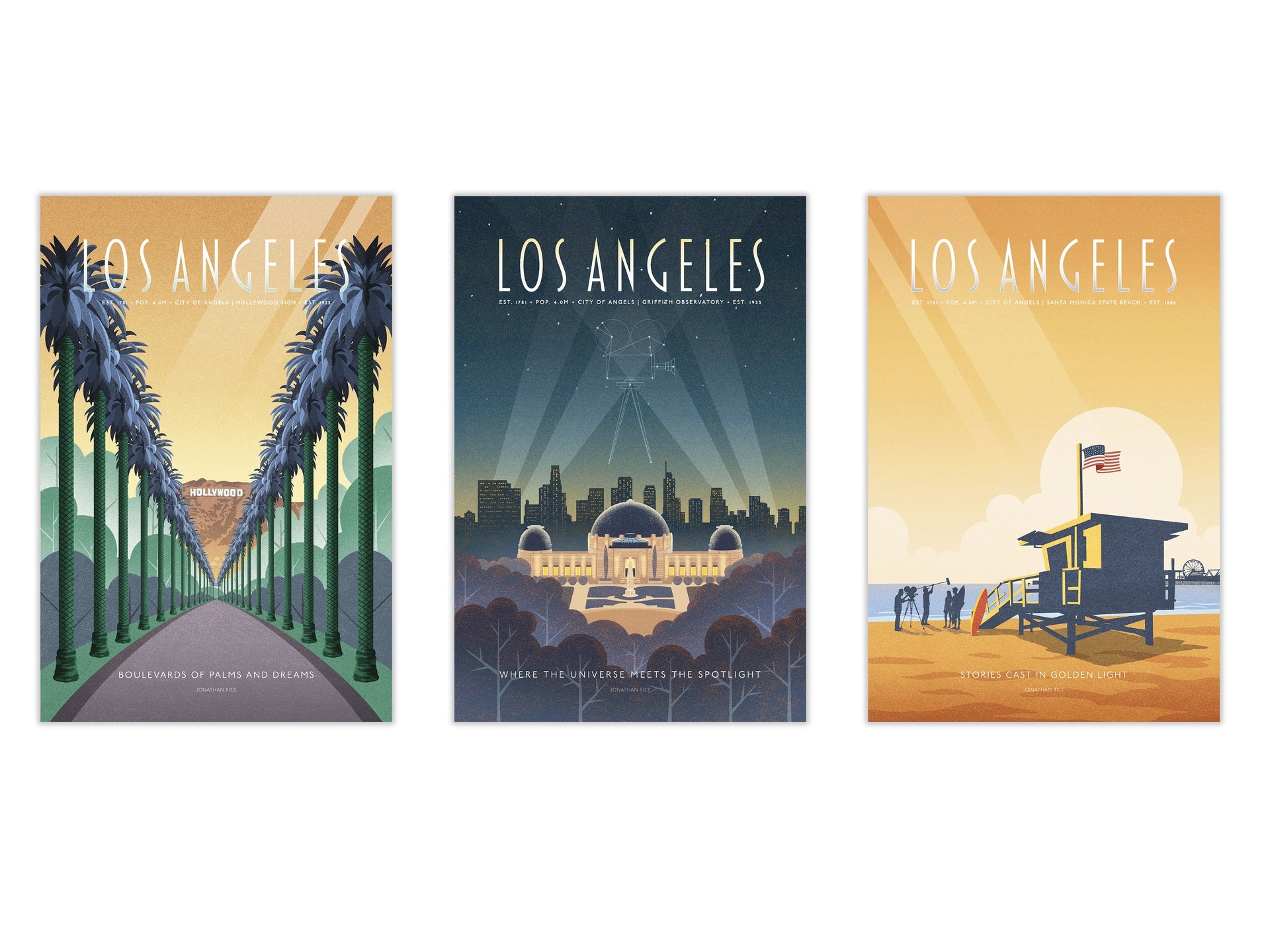 Includes: Boulevard of Dreams (Hollywood Palms & Sign) Griffith Park Observatory Santa Monica State Beach This curated gallery series celebrates...