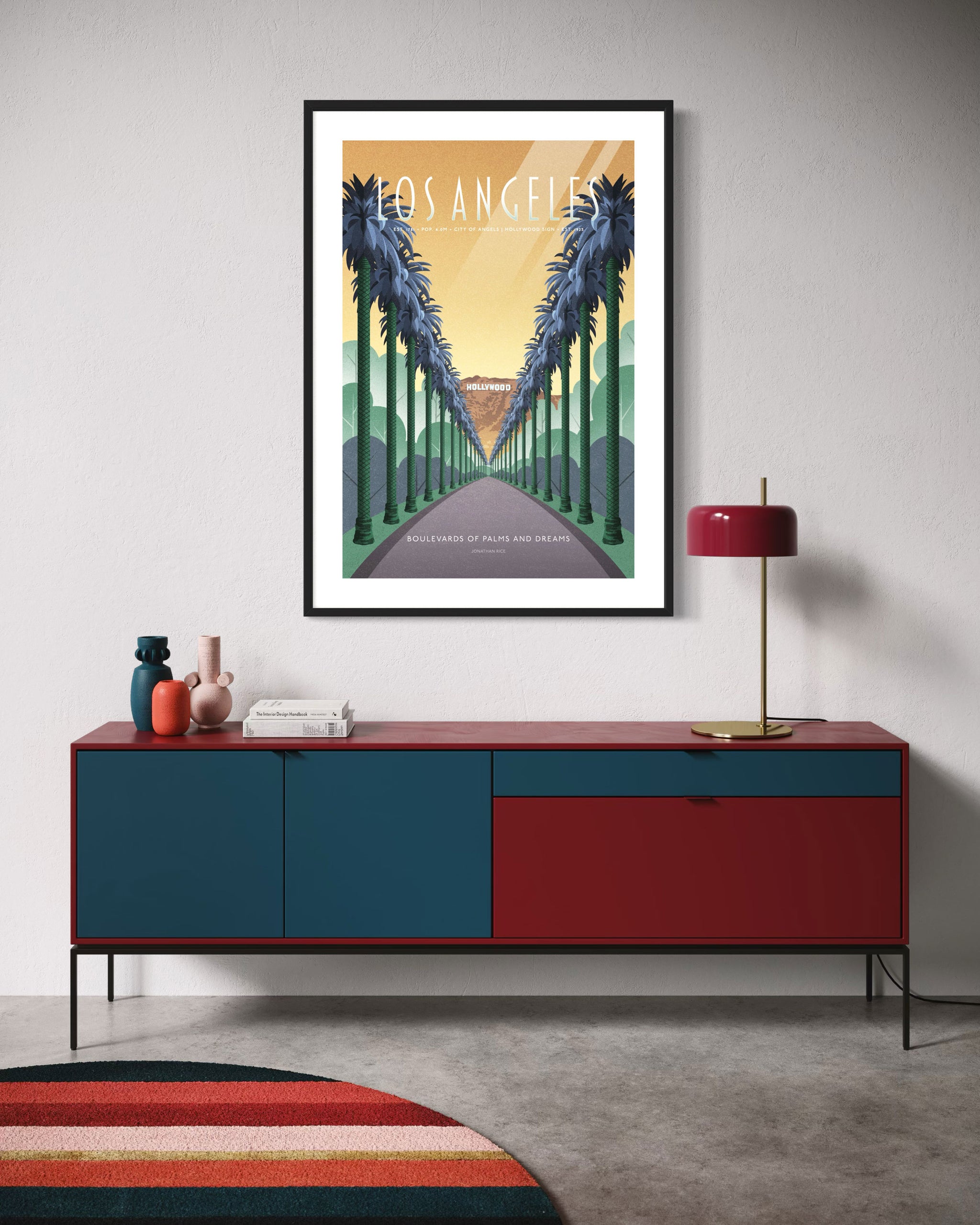 Bring home the golden light of Los Angeles and let this print add warmth, story, and mid-century style to your space.