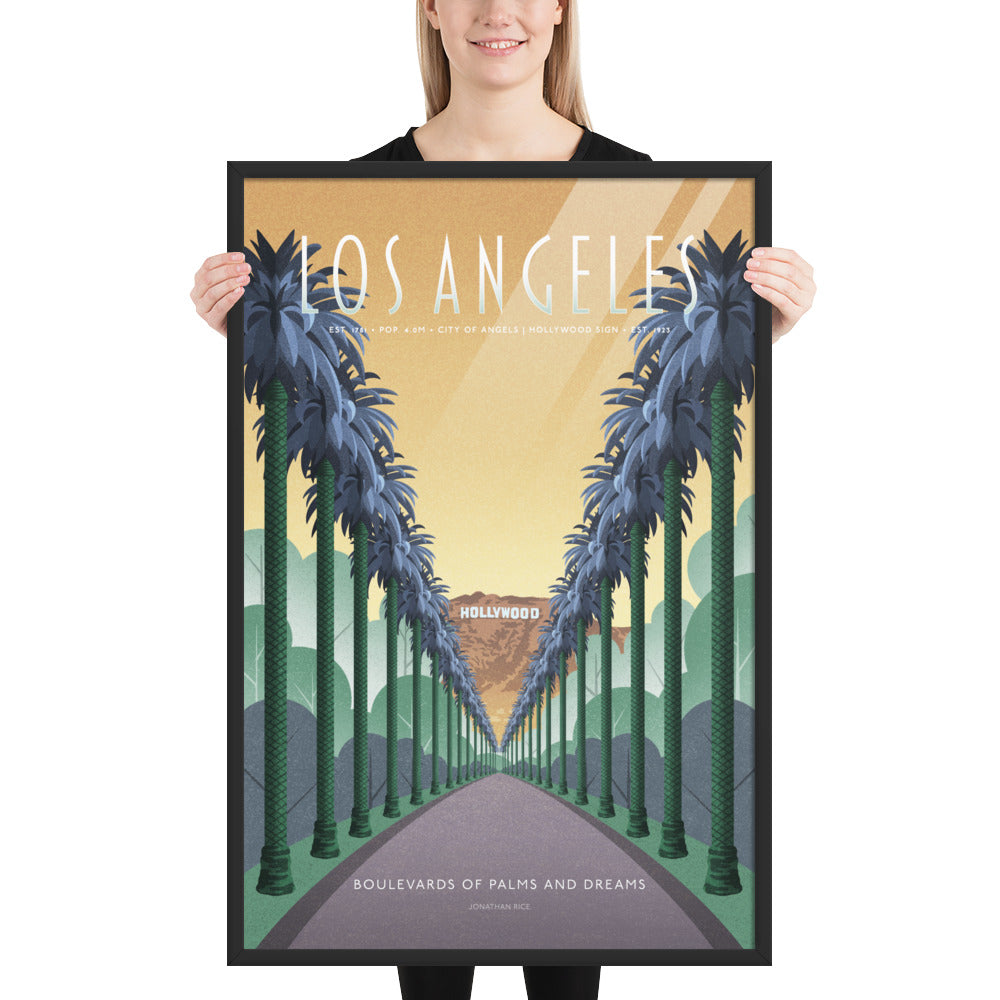 This print celebrates the golden era of Southern California—an homage to sunshine, stardom, and that unmistakable city glow. Perfect for film lovers, travelers, and collectors of nostalgic art, it pairs beautifully with my other LA series prints (“Where the Universe Meets the Spotlight” and the upcoming Santa Monica Beach edition).